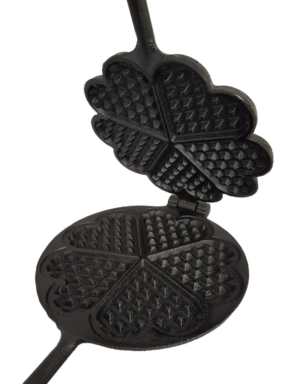 Forma de Ferro Fundido para Waffle com Cabo de Madeira para Fogão a Lenha – 16cm